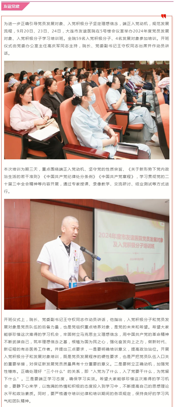 导读:市友谊医院举办2024年度党员发展对象、入党积极分子学习培训班