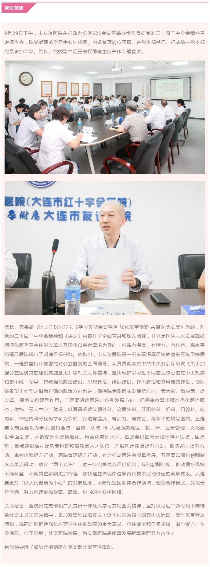 导读:市友谊医院举办学习贯彻党的二十届三中全会精神宣讲报告会