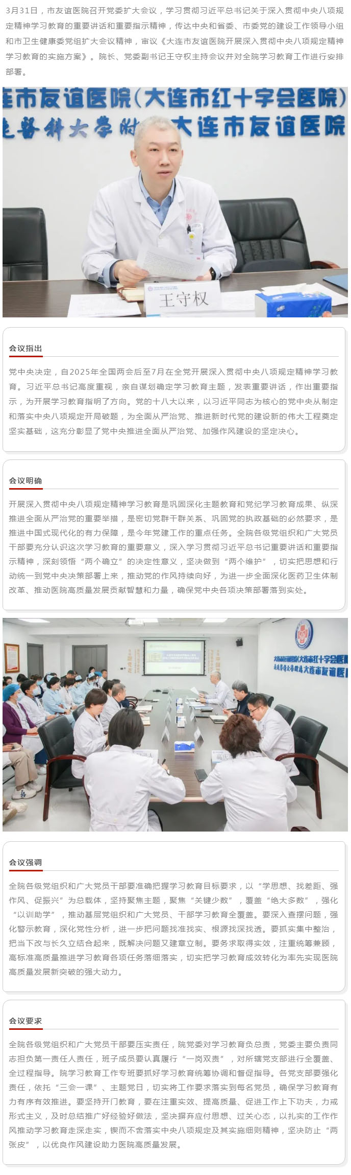 导读:【友谊党建】大连市友谊医院召开深入贯彻中央八项规定精神学习教育党委扩大会议