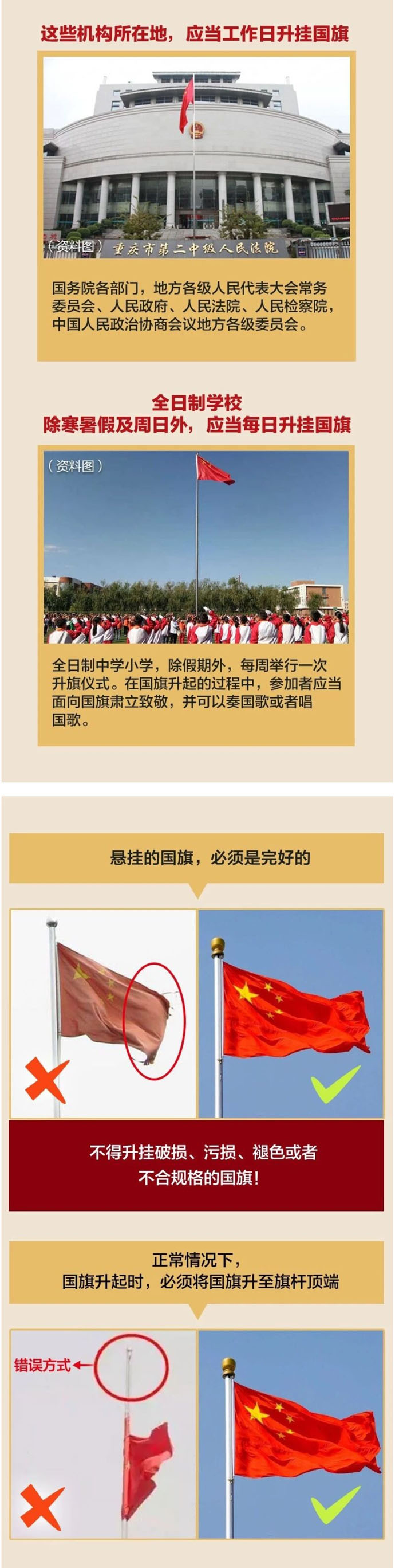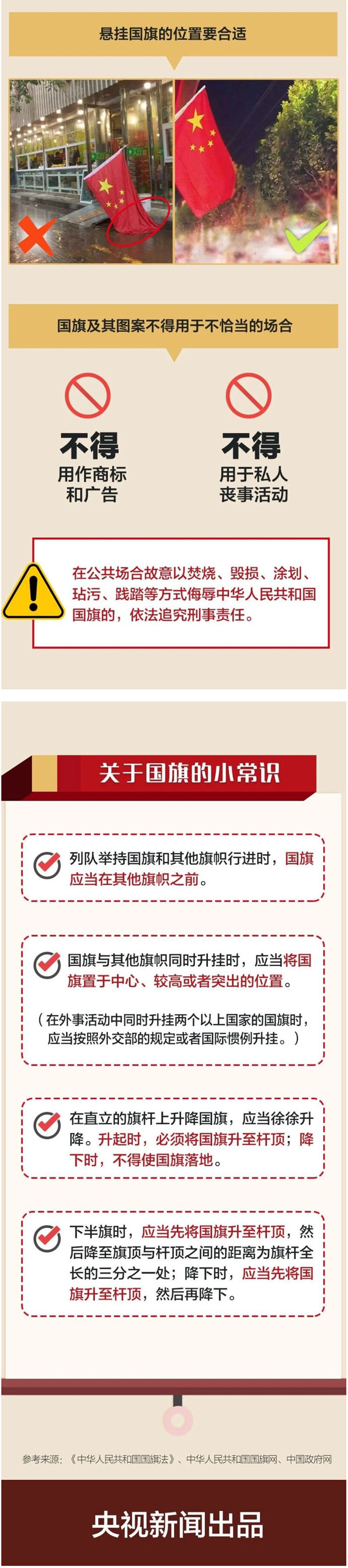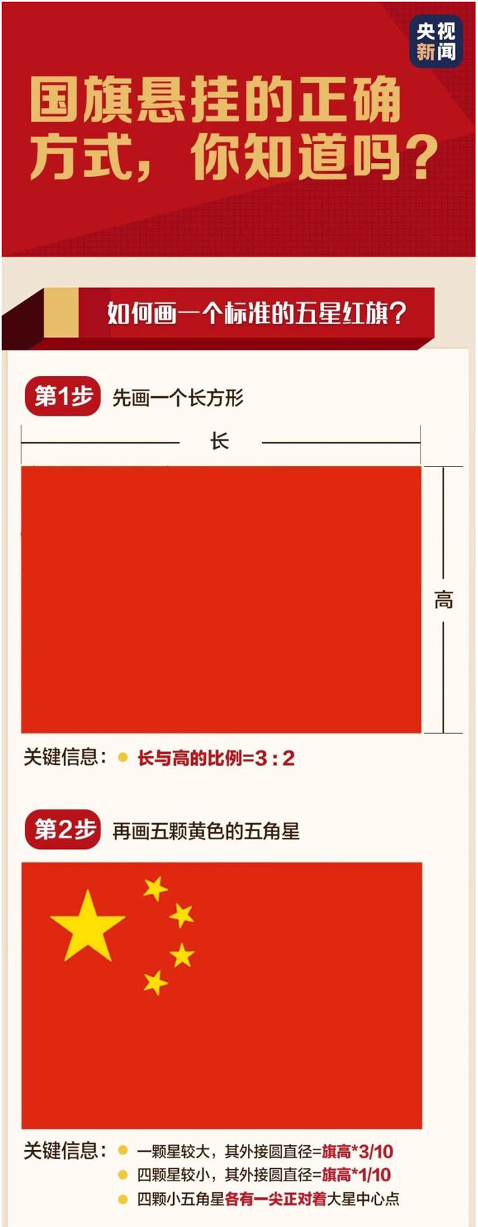 五星红旗,是中华人民共和国的象征和标志,必须规范与正确使用。但如果悬挂方式不妥,就可能违反《中华人民共和国国旗法》。今天,就让我们通过一张图,学习挂国旗的各种小知识。