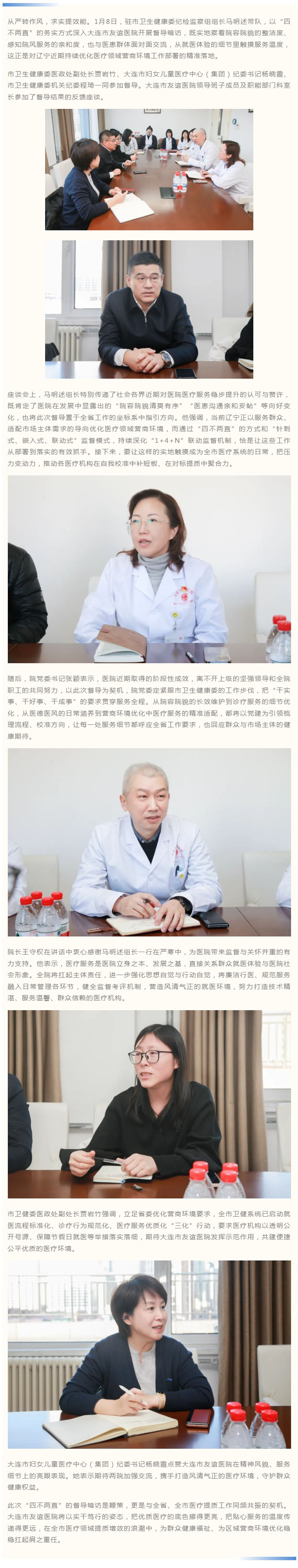 紧扣全省健康系统优化营商环境工作部署,市纪委监委驻市卫生健康委纪检监察组督导暗访大连市友谊医院