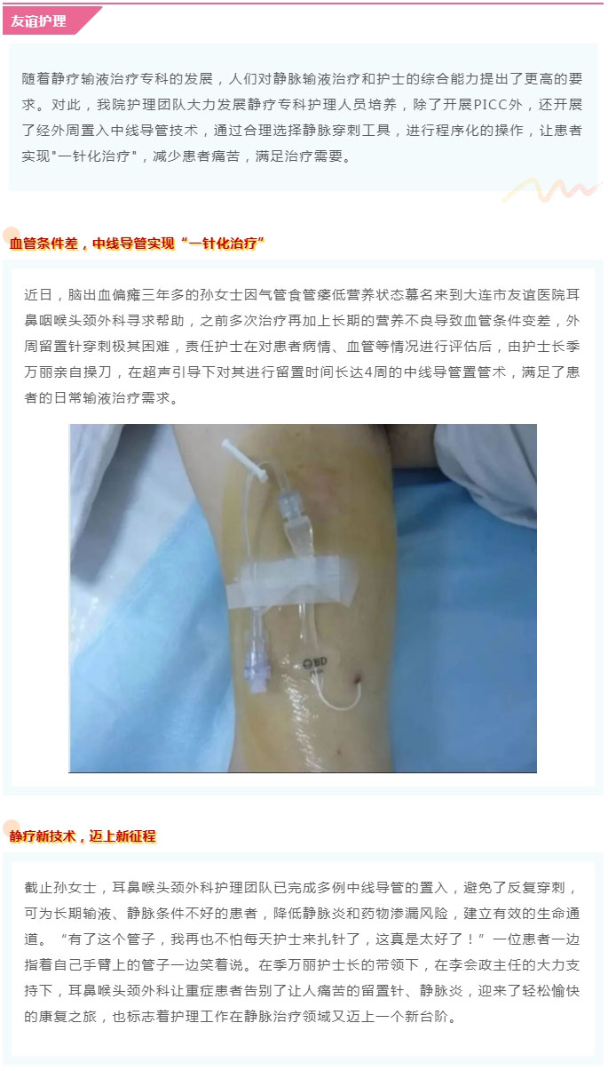 导读:【友谊护理】中线导管强势开启静脉输液新篇章