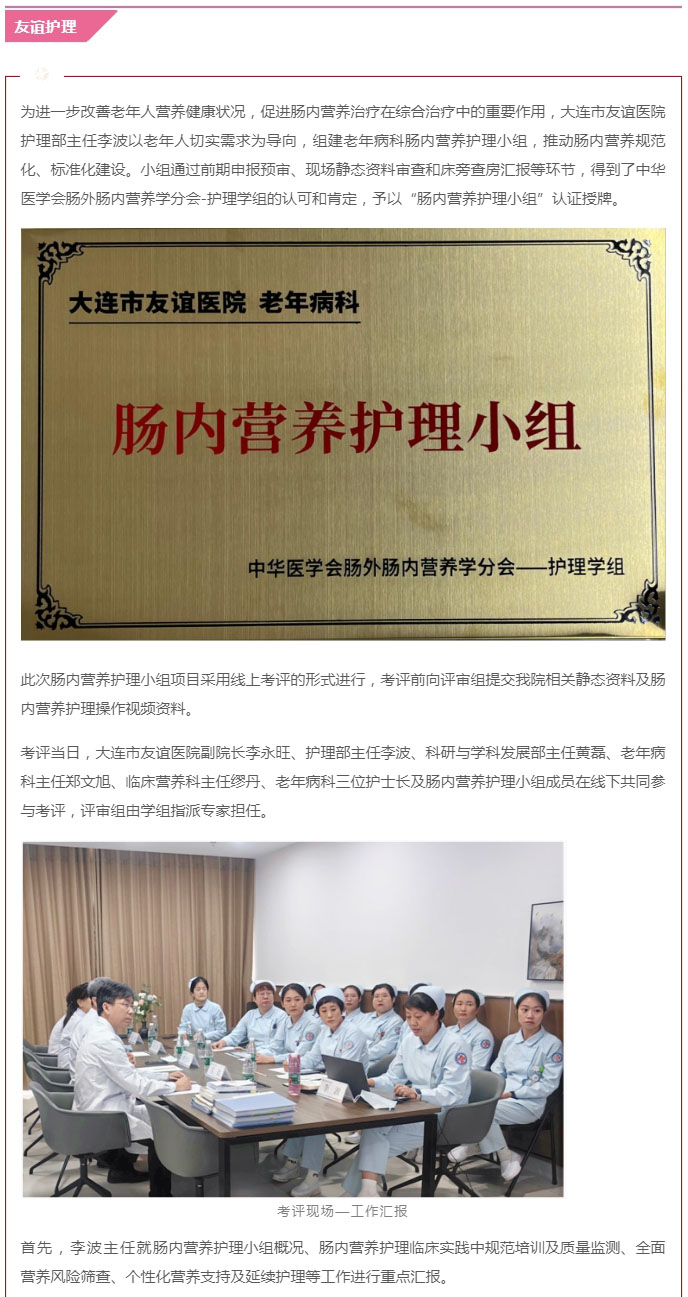 导读:【友谊护理】乘势而为!老年病科肠内营养护理小组获“中华医学会”认证授牌