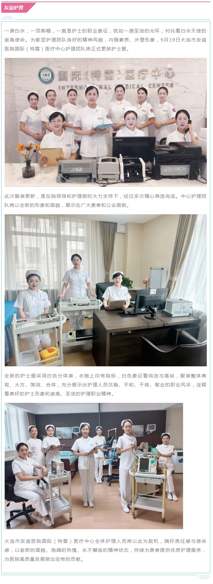 导读:【友谊护理】国际(特需)医疗中心护理人员换装展新颜