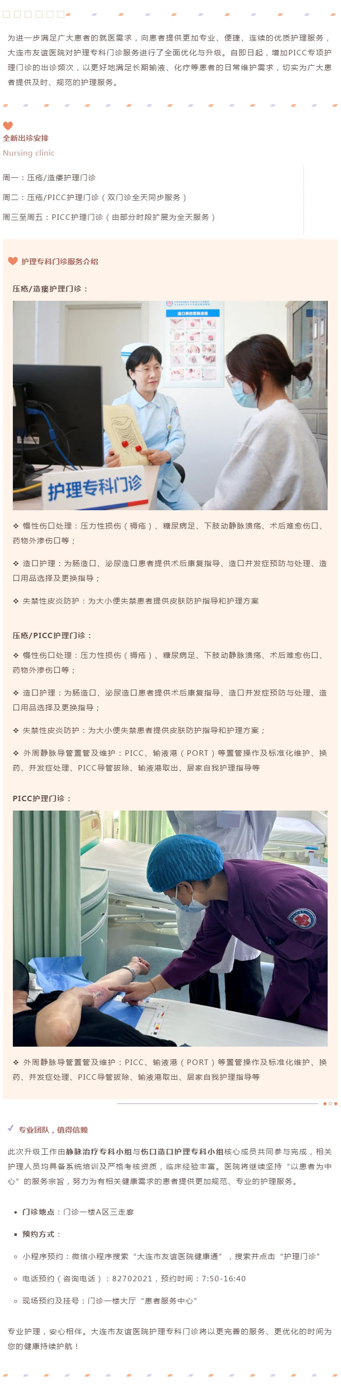 导读:【友谊服务】护理专科门诊升级扩容!为您的健康保驾护航