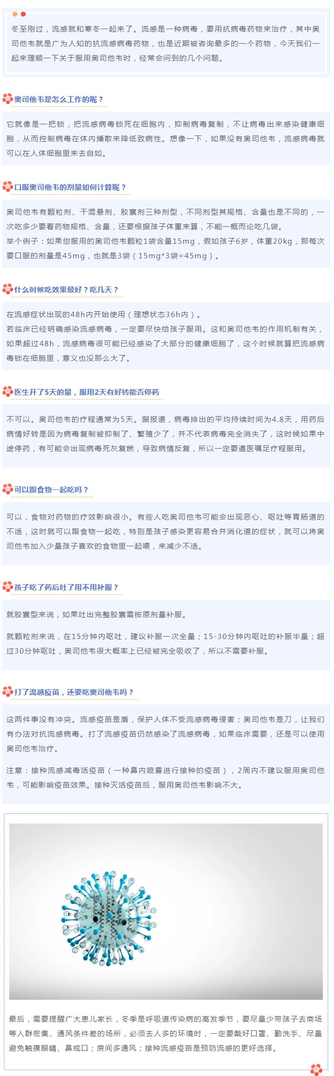 导读:【友谊科普】关于奥司他韦,家长最关心的几个问题