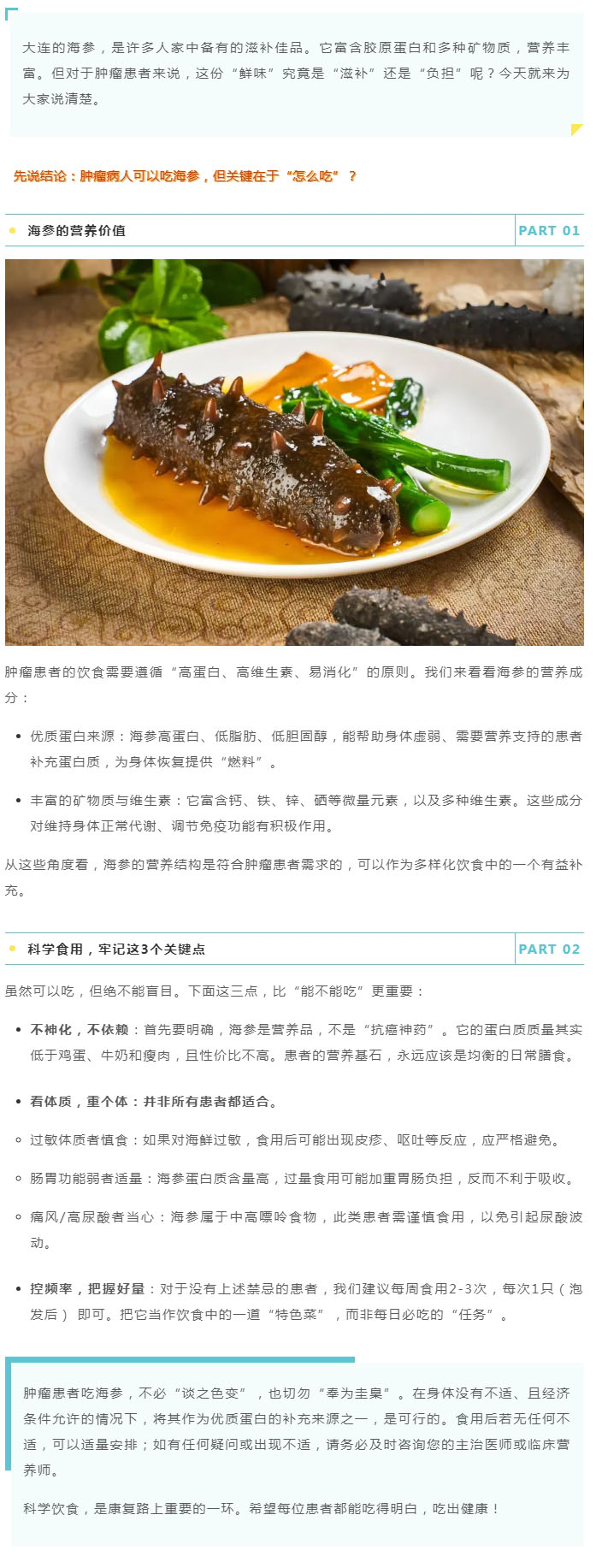 导读:【友谊科普】肿瘤病人可以吃海参吗?