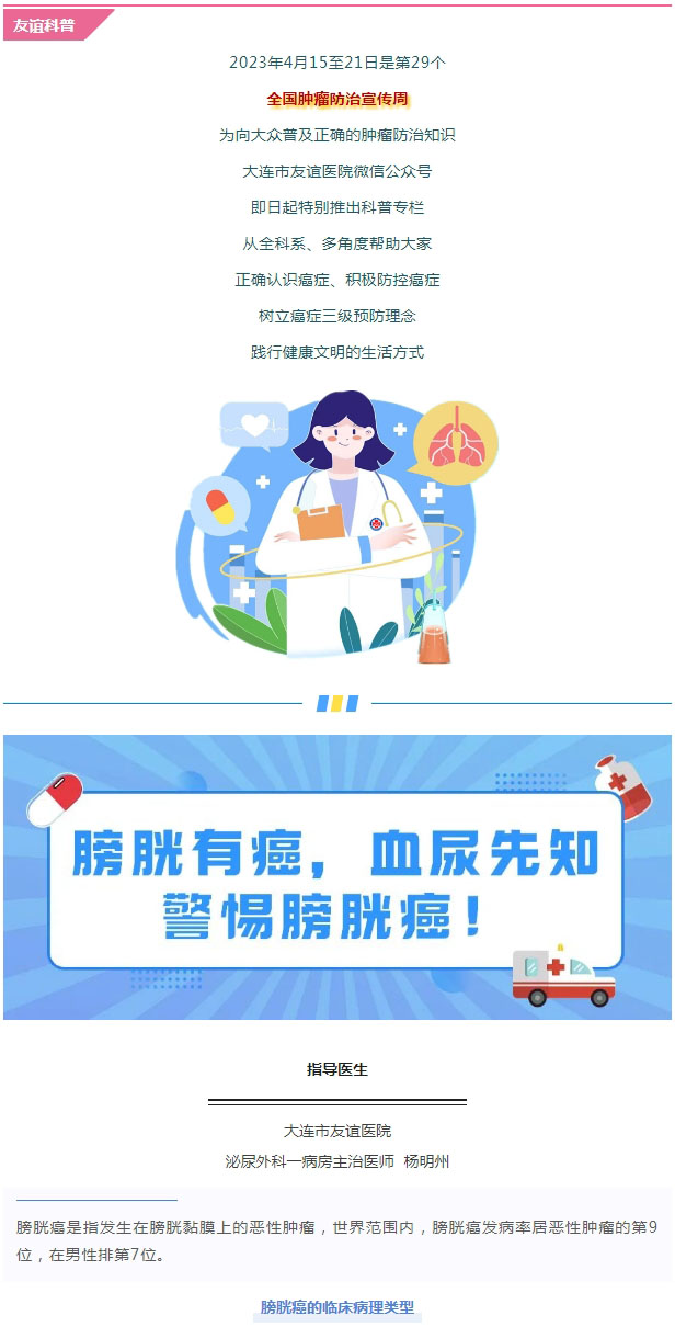 【肿瘤防治宣传周】膀胱有癌,血尿先知,警惕膀胱癌!