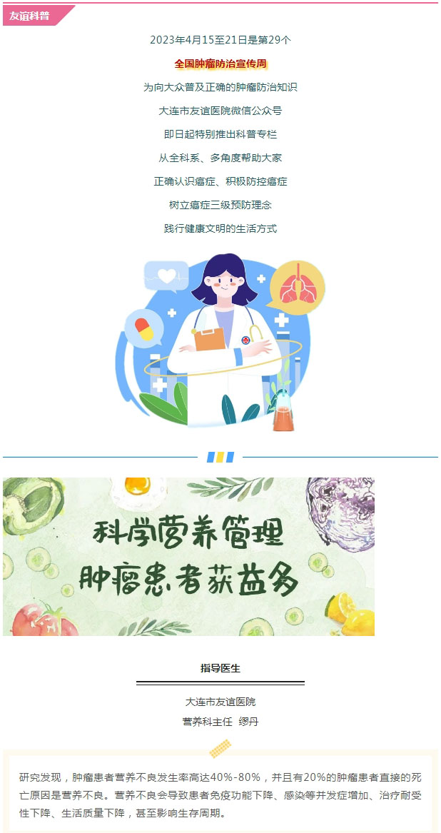 【肿瘤防治宣传周】科学营养管理,肿瘤患者获益多