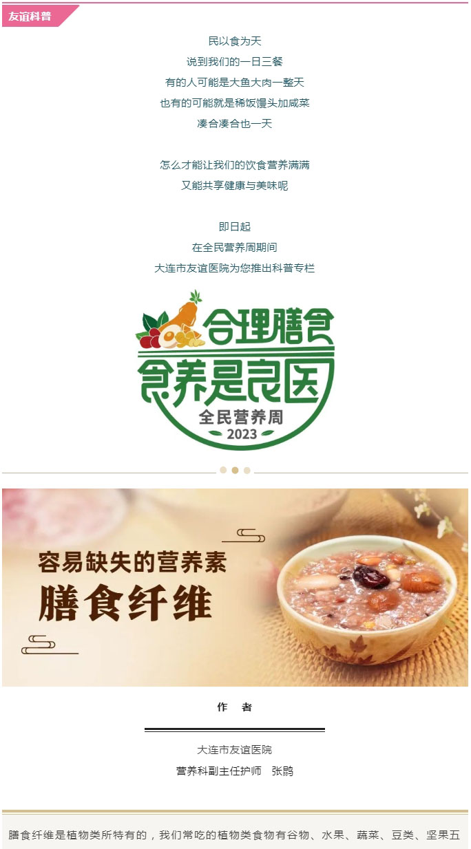 导读:【全民营养周】容易缺失的营养素——膳食纤维