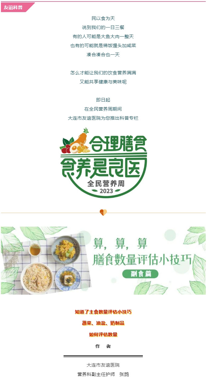导读:【全民营养周】算,算,算膳食数量评估小技巧(副食篇)