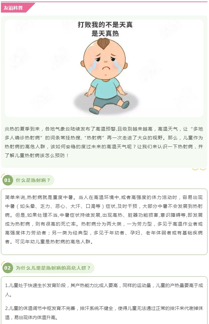 导读:【友谊科普】热!热!热 !谨防儿童热射病