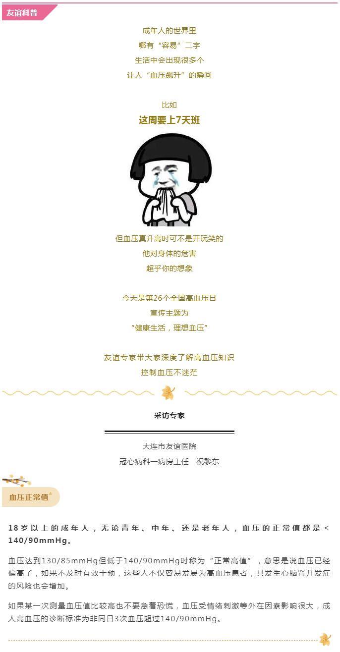 导读:【友谊科普】全国高血压日:血压多少算正常?