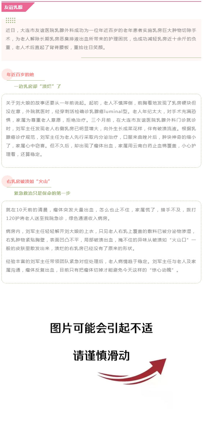 导读:百岁老人乳腺肿物“火山式”破溃,血流不止!关键时刻…