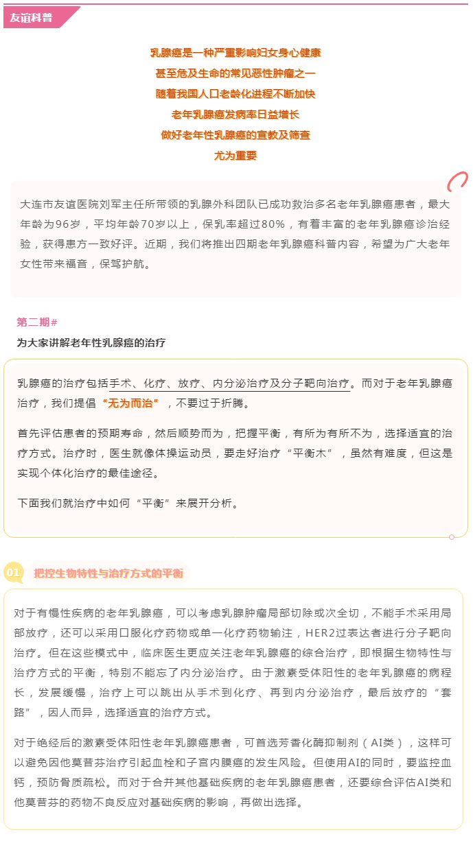 导读:【友谊科普】对于老年乳腺癌,“无为而治”是最好的选择