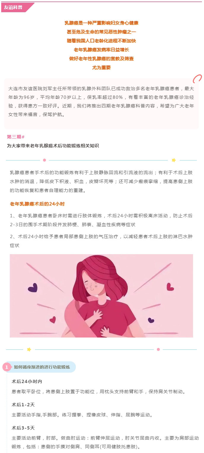 导读:【友谊科普】老年乳腺癌术后的功能锻炼应该怎么做?