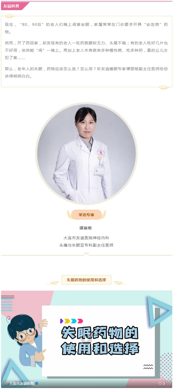 导读:【友谊神内】老人失眠,药物该怎么用??