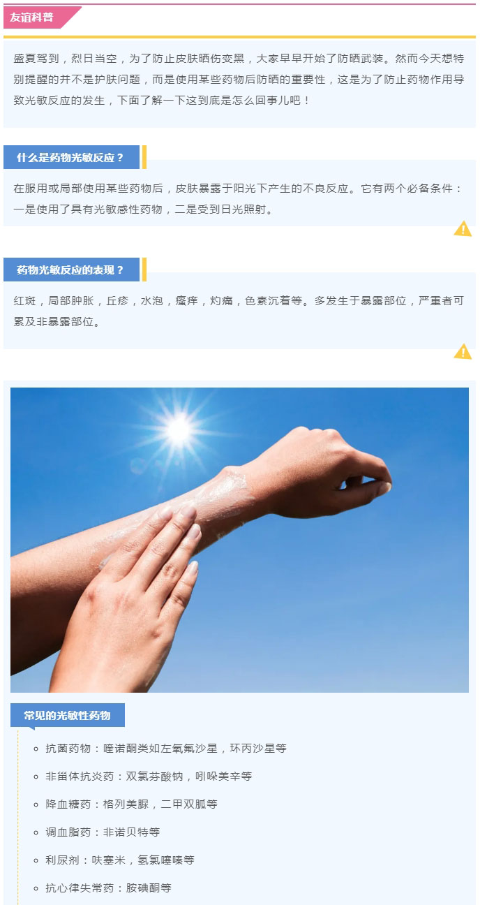 导读:【友谊科普】什么,服用这些药后不能晒太阳?