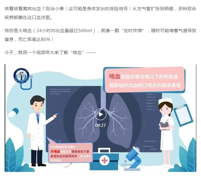 导读:【友谊科普】医生最不愿看到的咳血症状!这支视频一次说清