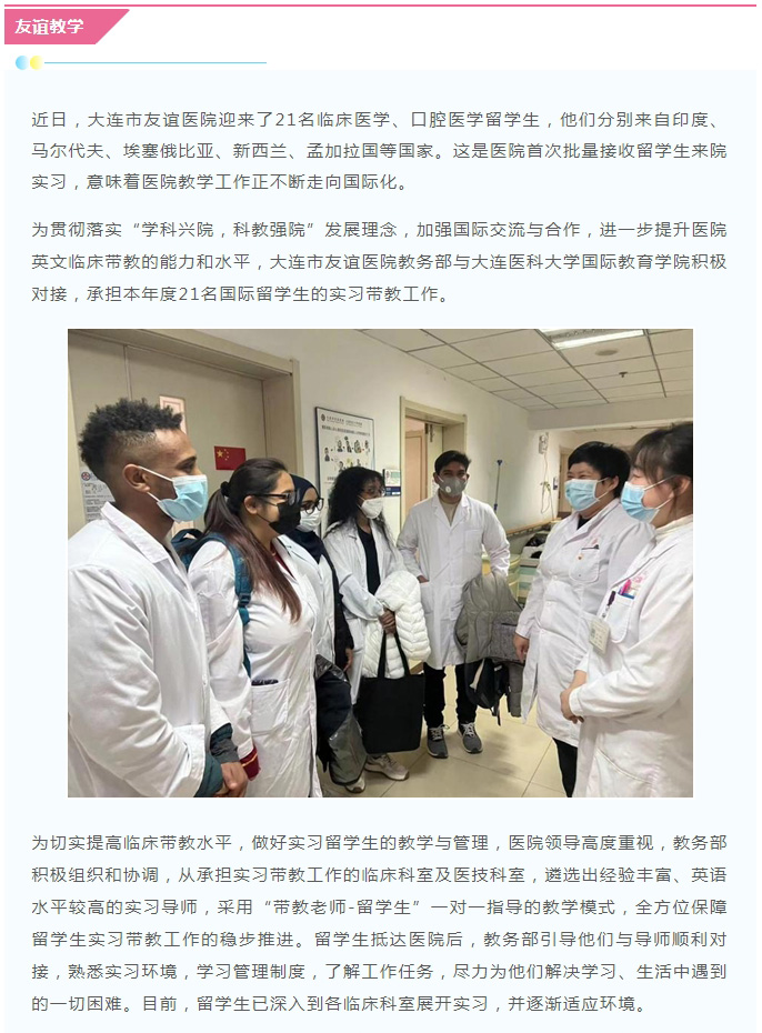 导读:【友谊教学】首次批量接收留学生来院实习,推进医院医学教育国际化