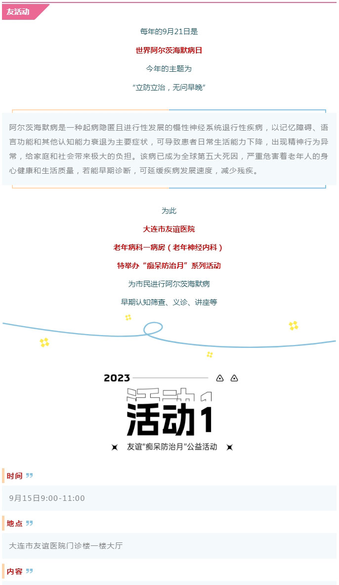 导读:【友活动】立防立治“挽留”父母记忆,这两场义诊安排上!