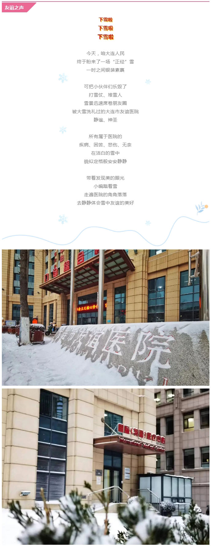 导读:一场雪,让大连市友谊医院变了模样!