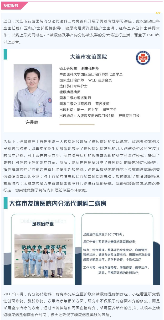 导读:【友谊服务】互联网+延伸护理服务,让糖友们有“医靠”