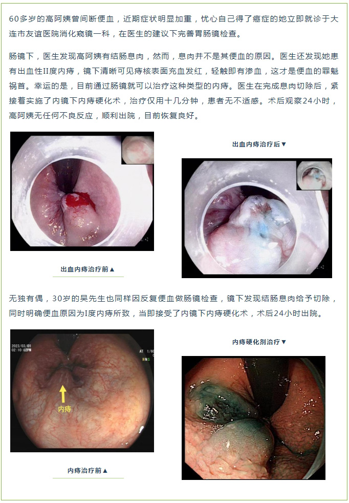 【友谊消化】一次肠镜,同时完成切息肉、除内痔,一举两得!