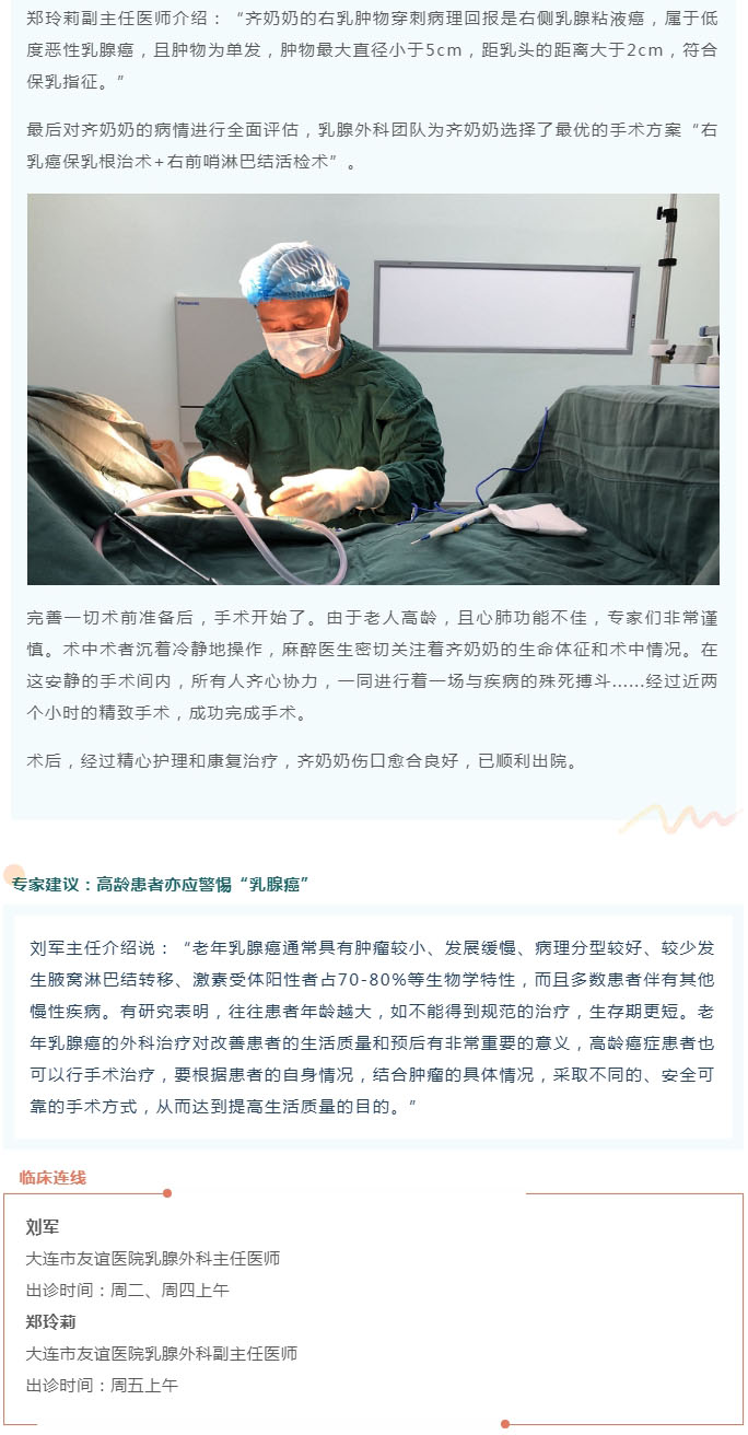 导读:【友谊乳腺】精准手术+老年GIT团队多学科会诊,为超高龄乳癌患者扫除手术雷区