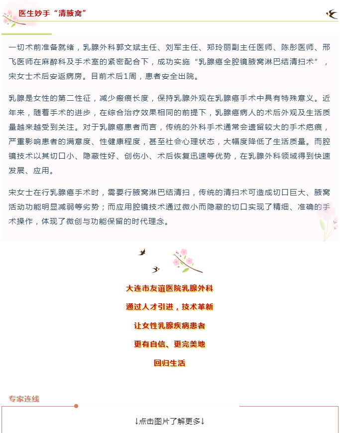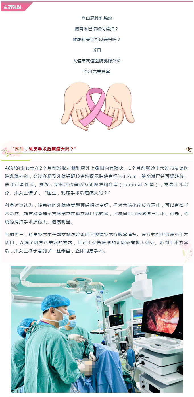 【友谊乳腺】腔镜下“扫净”乳腺癌腋窝淋巴结,让健康与美并存!