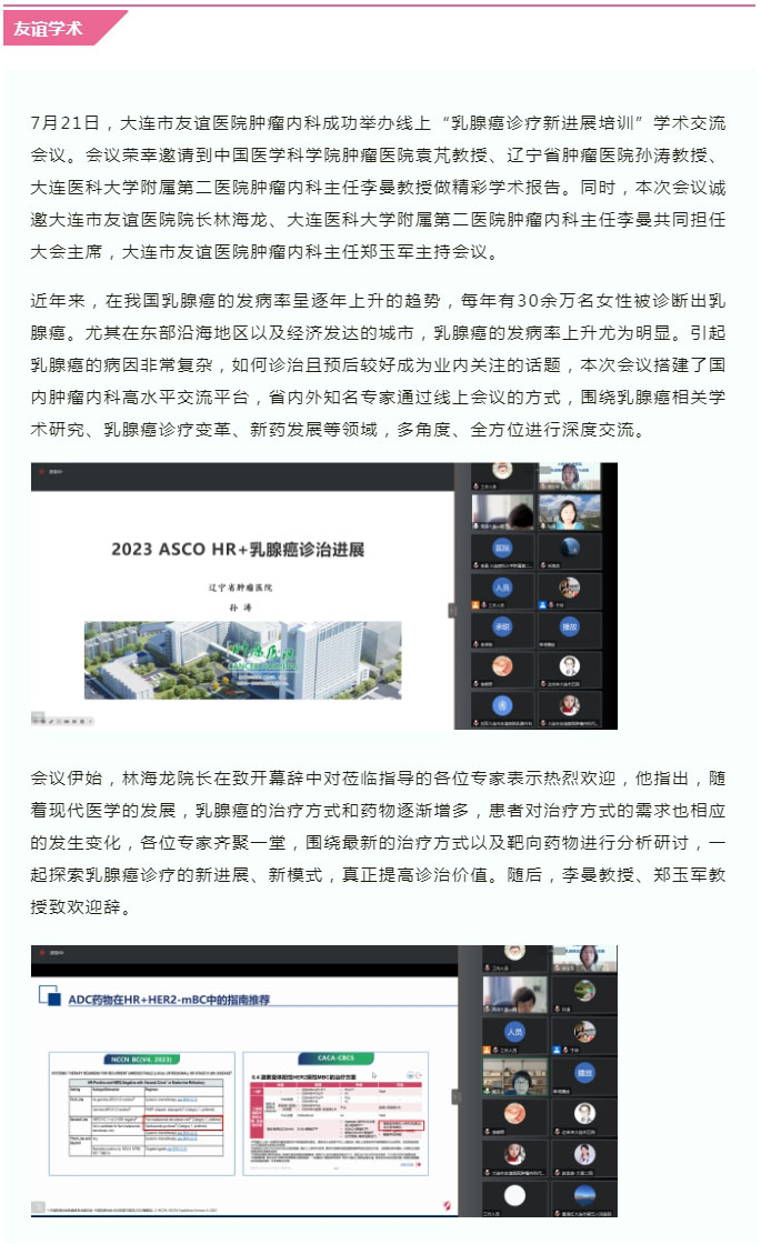 【友谊学术】大连市友谊医院肿瘤内科成功举办“2023年乳腺癌诊疗新进展培训”