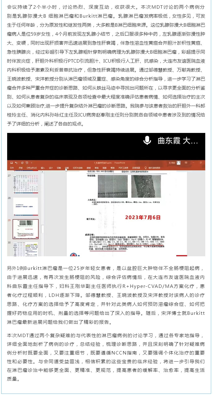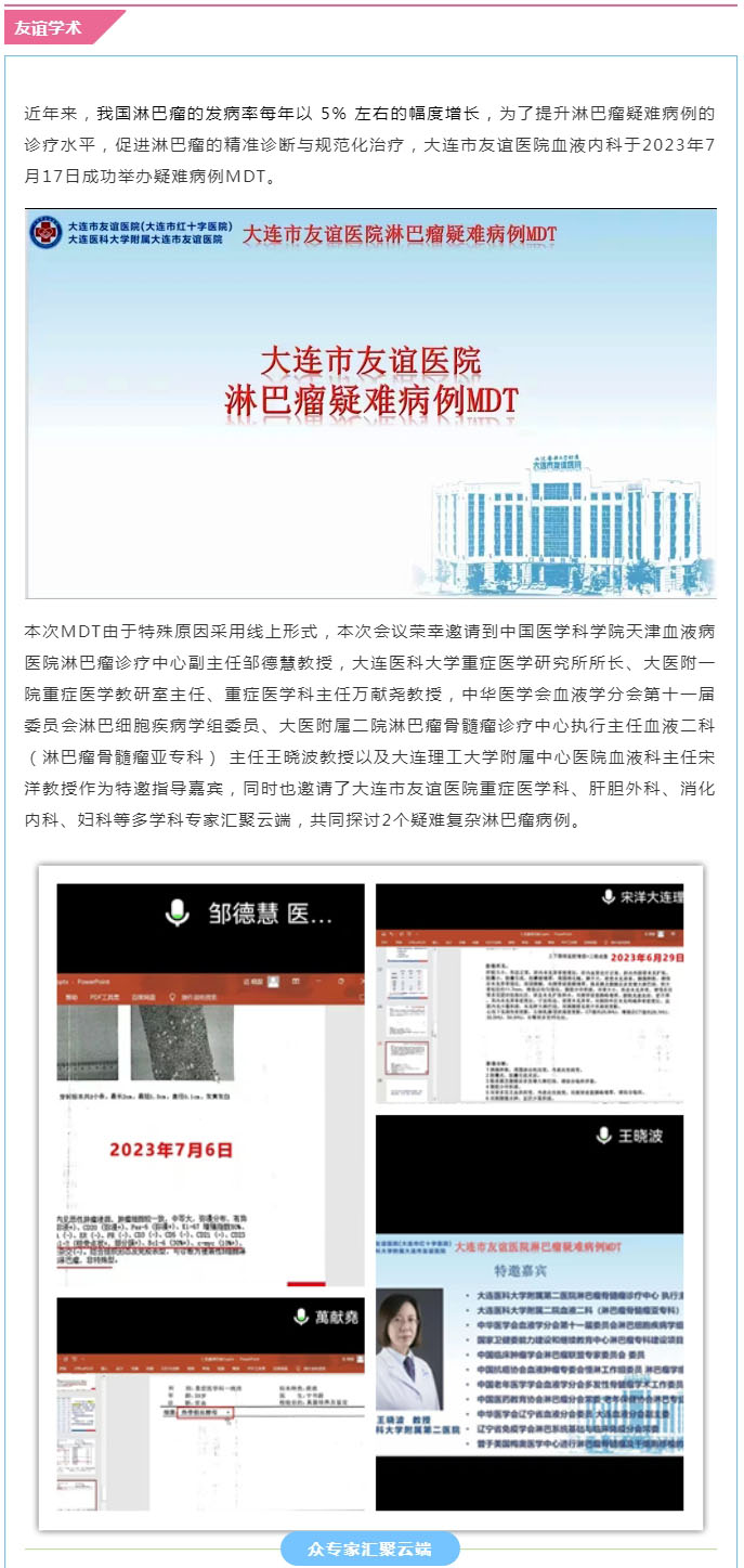 【友谊学术】聚精“汇”神,云程发轫——大连市友谊医院成功举办淋巴瘤疑难病例MDT