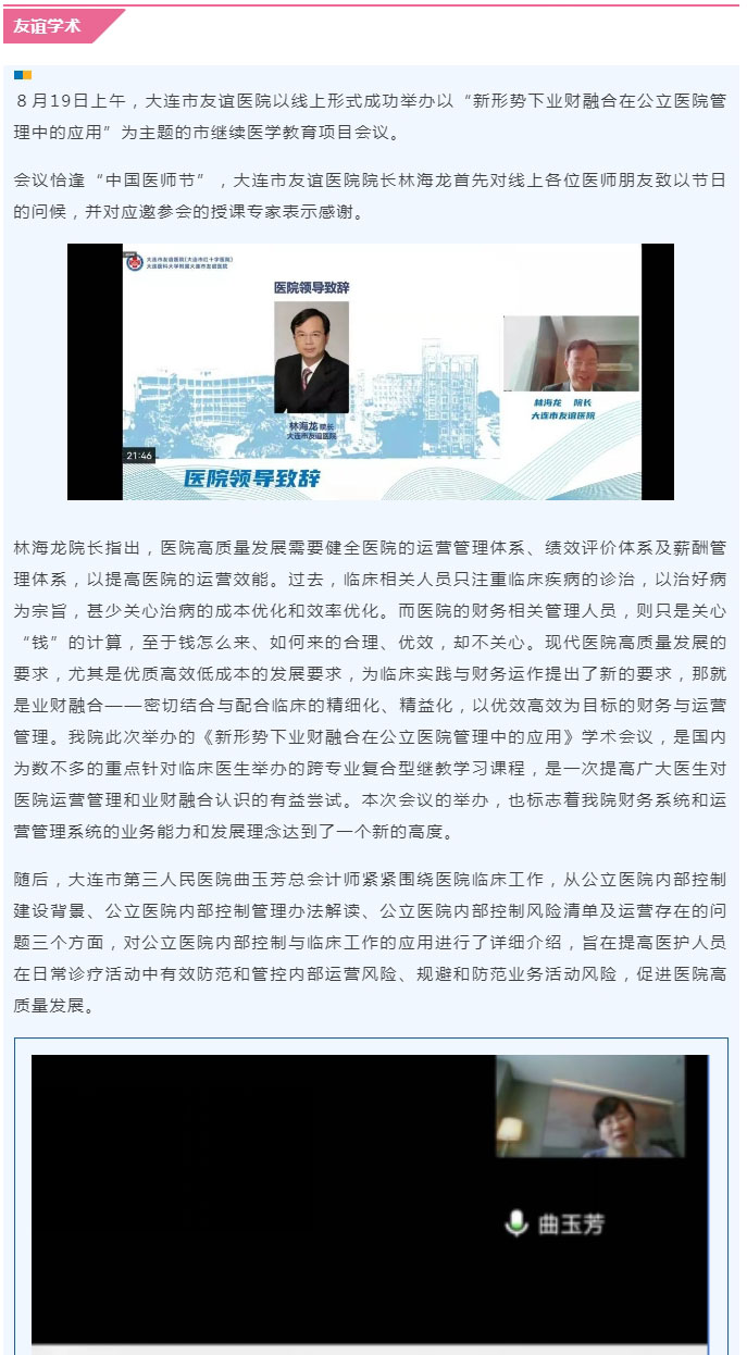 【友谊学术】新形势下业财融合在公立医院管理中的应用