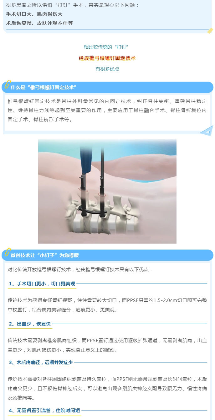 导读:【友谊脊柱】只“打洞”,不“开刀”,脊柱手术患者不必再谈“钉”色变!