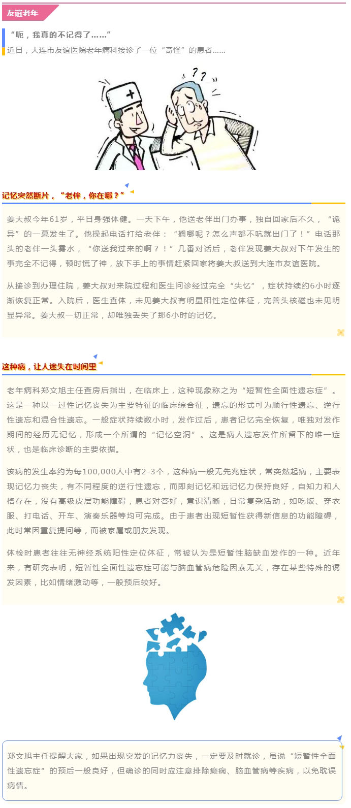 导读:【友谊老年】老人记忆“卡Bug”,我丢失的6小时哪去了?