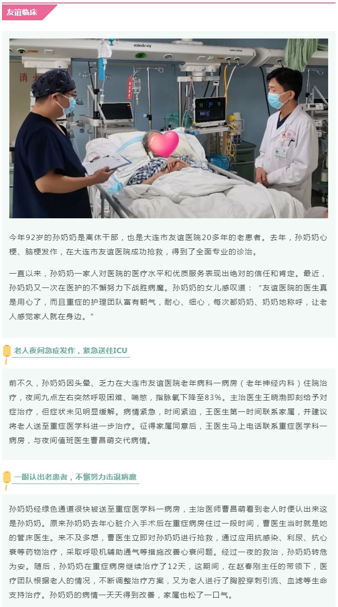 导读:【友谊临床】九旬老人再次脱险,医生建“家属群”传递点滴温暖