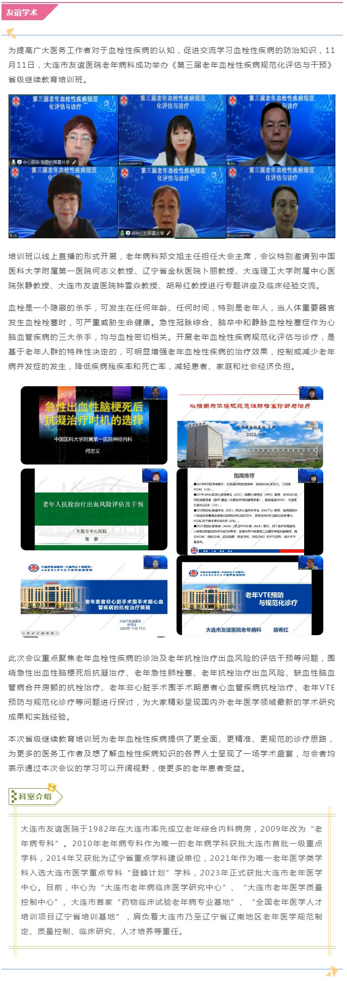 【友谊学术】大咖在线,聚焦老年血栓新发展