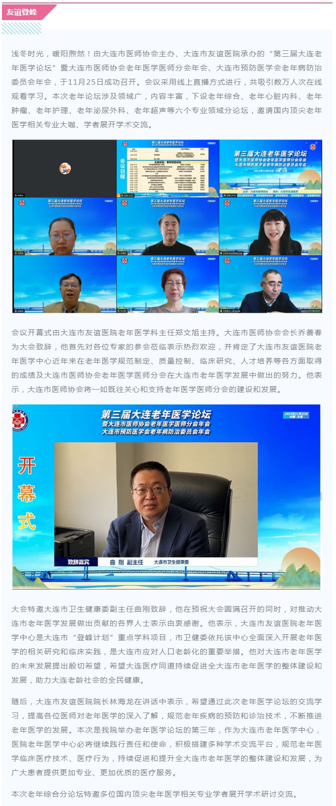 导读:【友谊登峰】以学术交流强筋壮骨,铸就老年医学发展新优势
