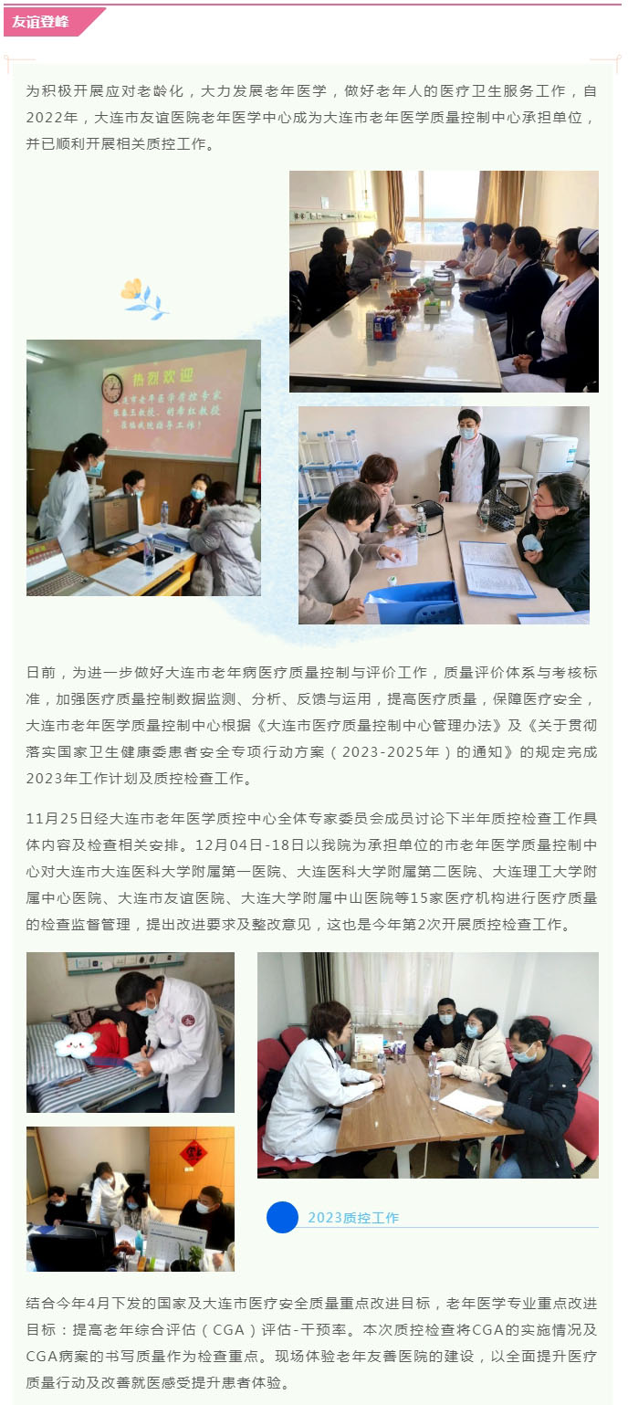 【友谊登峰】大连市老年医学质量控制中心完成2023年下半年老年医学质控工作