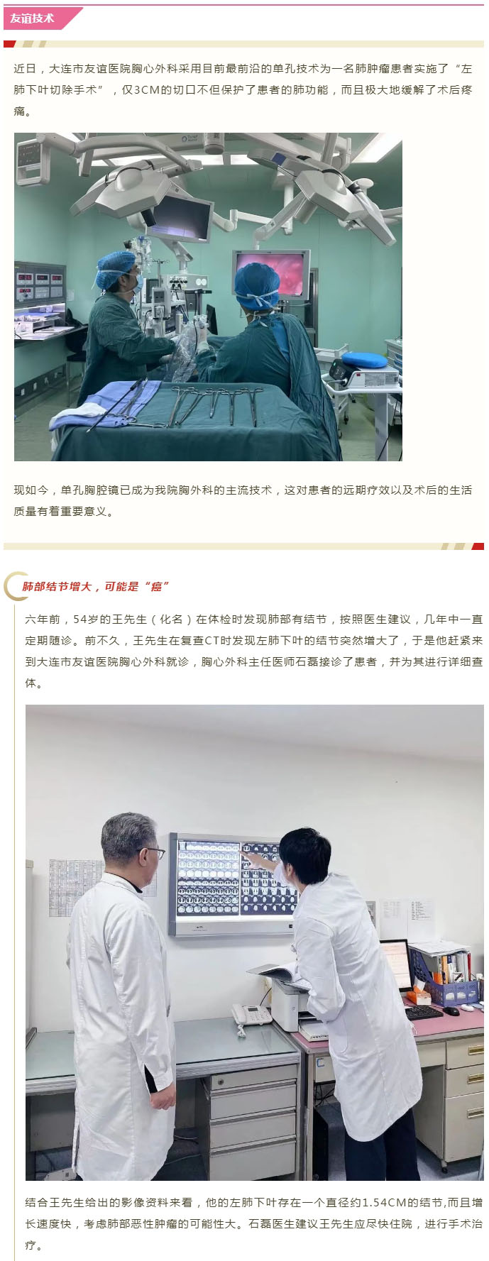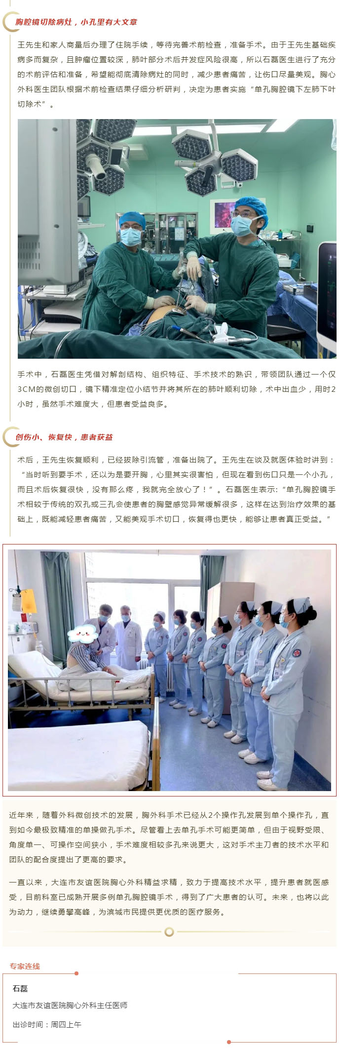 导读:【友谊技术】“胸中有术”3CM小单孔更微创更无痕
