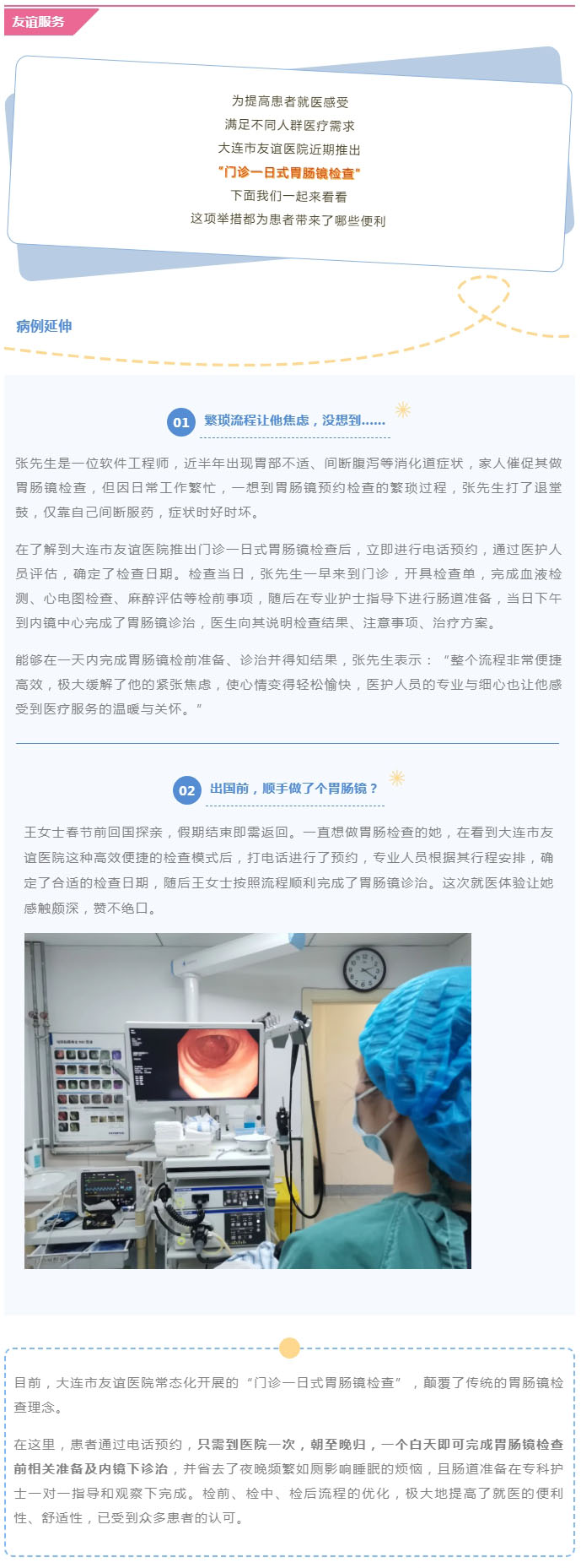 导读:【友谊服务】“门诊一日式胃肠镜检查”常态化开展,听听患者怎么说?