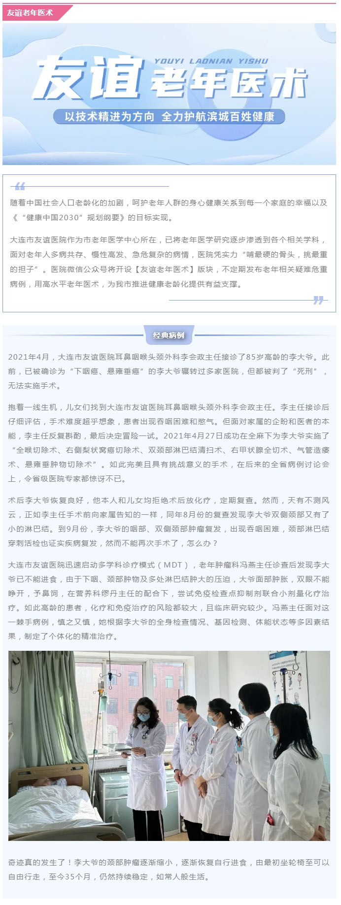 导读:【友谊老年医术】内外接力,85岁高龄肿瘤患者再创生命奇迹