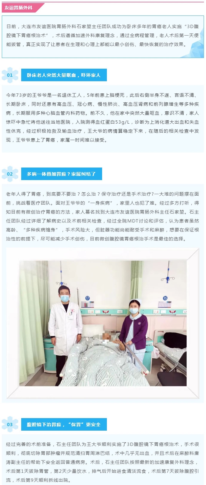 导读:【友谊胃肠外科】微创治胃癌,打响老年“保胃战”