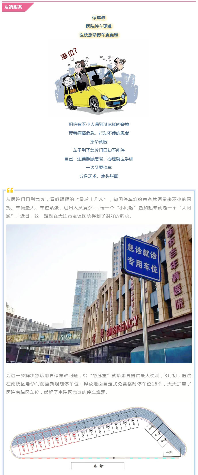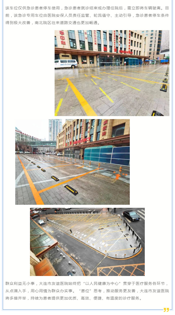 导读:大连市友谊医院免费“救急”车位,让急诊患者就医无忧!
