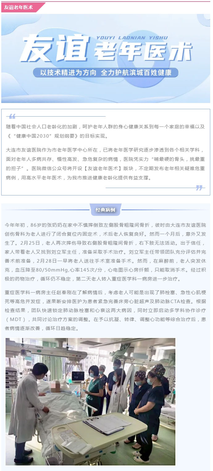 导读:【友谊老年医术】老人二次骨折突发休克,MDT诊疗为生命开道