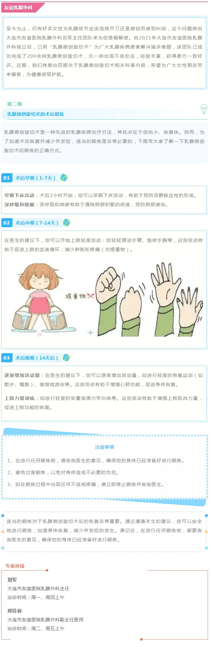 导读:【友谊乳腺外科】乳腺微创旋切术后的锻炼方式,你选对了吗?