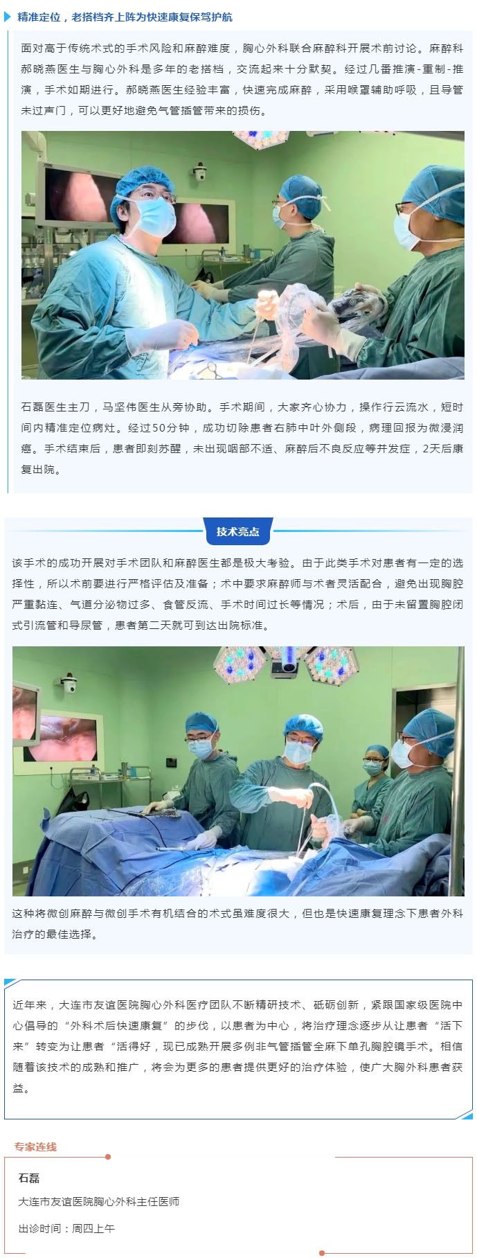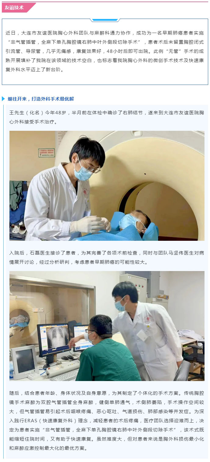 【友谊技术】“无管化”手术,让肺癌患者不止“活下来”还要“活得好”