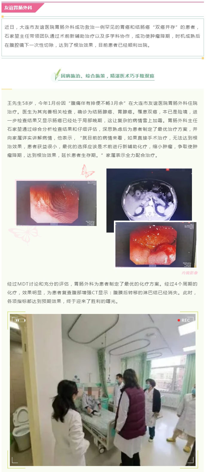 【友谊胃肠外科】胃肠道“双癌并存”怎么办?让肿瘤“飞”一会儿再一“镜”解决