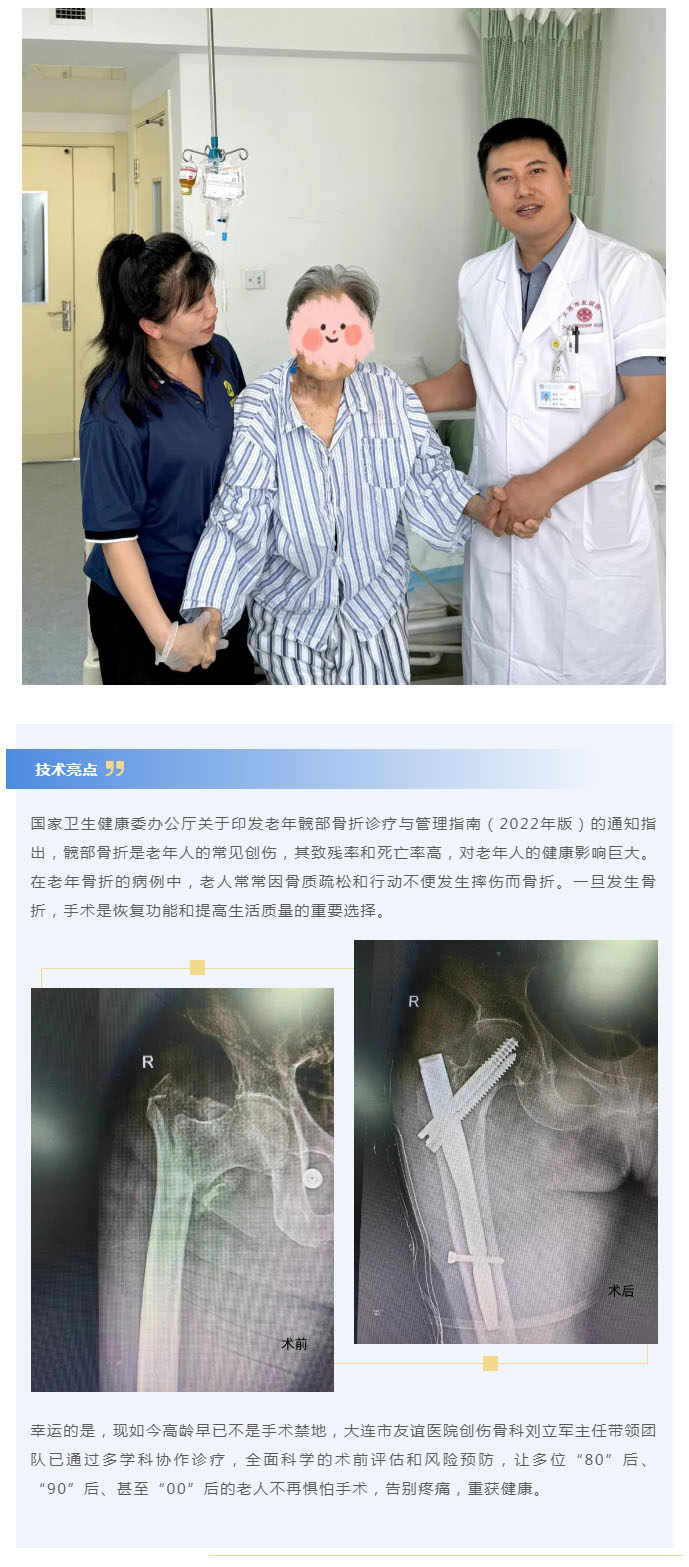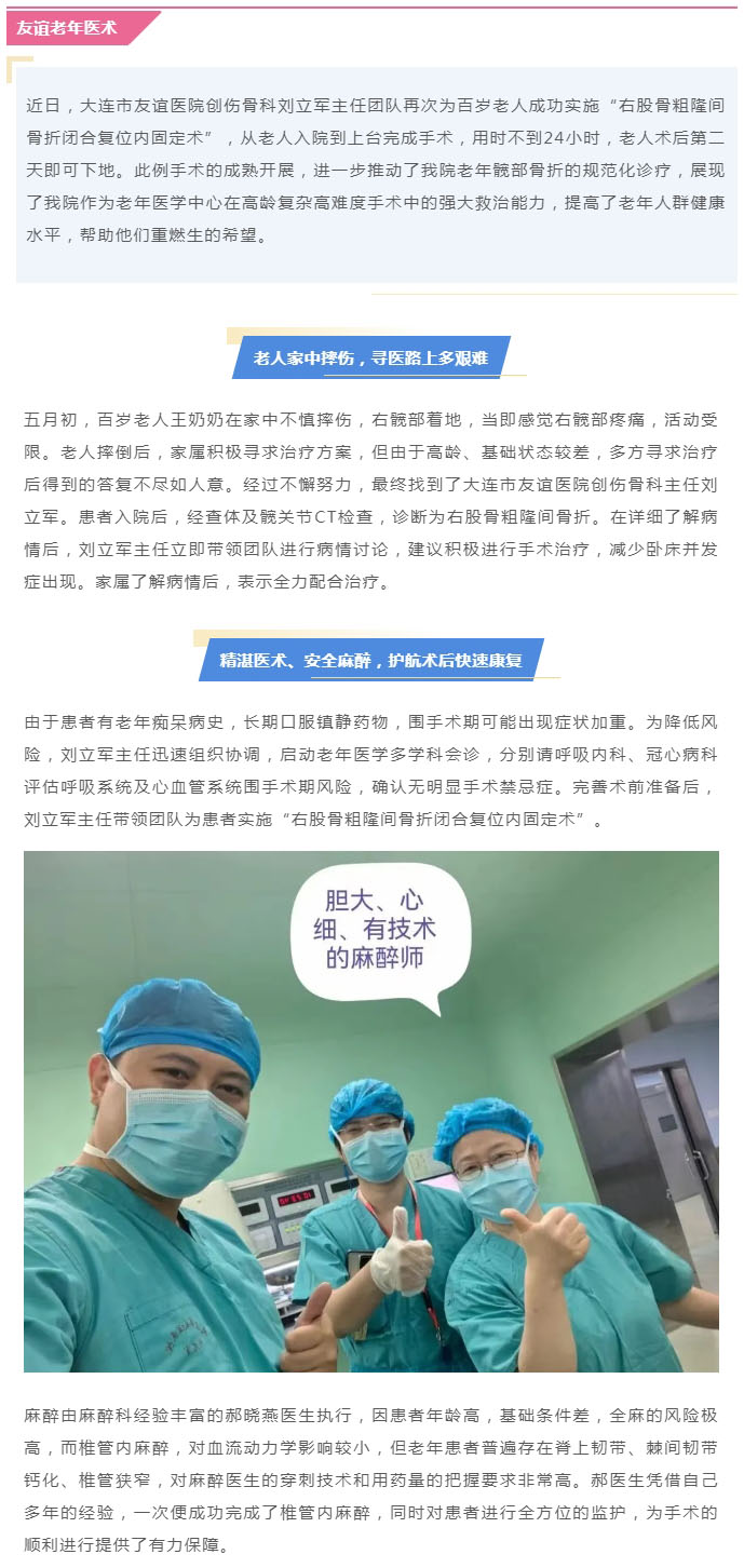 【友谊老年医术】百岁老人骨折不能“卧以待毙”,创伤骨科再次救治成功!