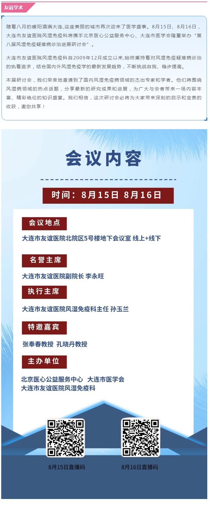 【友谊学术】第八届风湿免疫疑难病诊治进展研讨会暨市级继续教育项目启幕在即